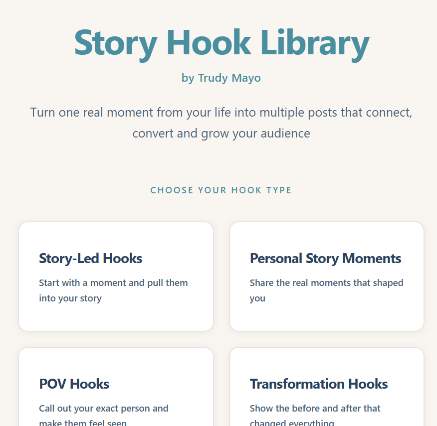 They have meaningful experiences, but no framework for translating those moments into content that helps the right people recognise themselves (and want to binge your offers!) This is where I come in!