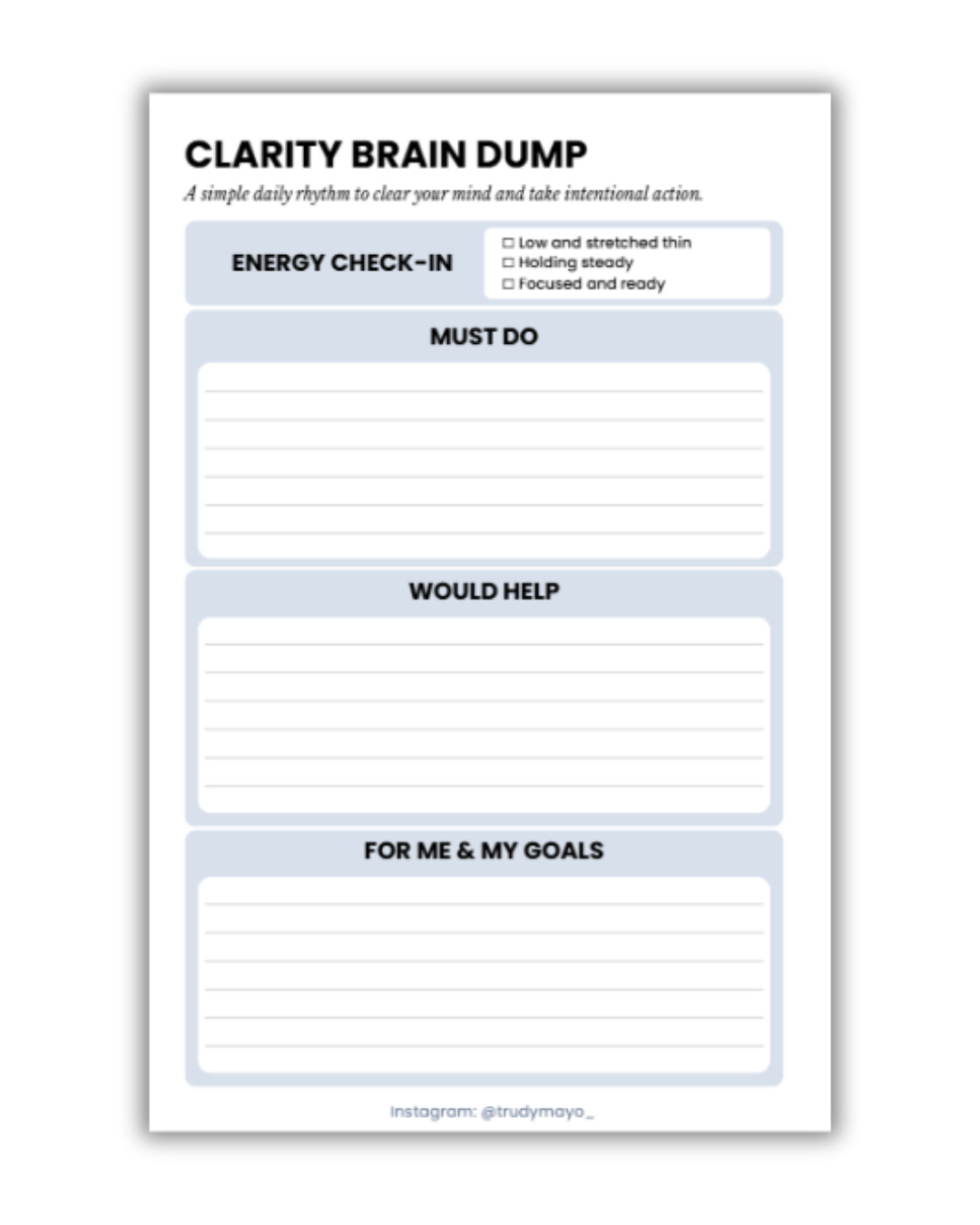 This guided brain dump gives you a way to pause for a moment, clear the mental noise, and regain direction when everything feels pulled in different directions.